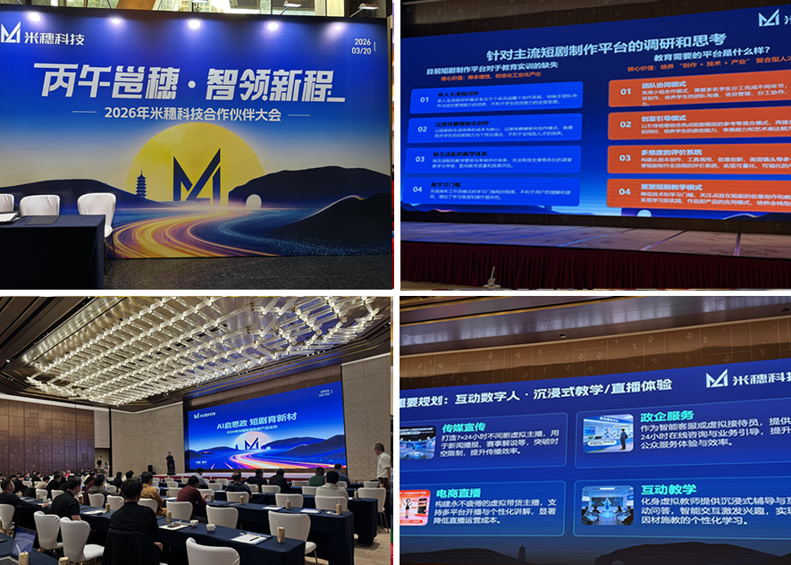 「丙午邕穗・智领新程」 2026 年3月20日米穗科技合作伙伴大会・南宁站 正式启幕 本次大会我们将携行业智能体、AI 思政、AI 短剧等全系列新品重磅亮相,与全国合作伙伴齐聚邕城,共赏 AI 技术盛宴,共绘行业发展蓝图,共启合作共赢新征程。 大会核心亮点速览 一、新征程 新生态 新跨越— 米穗经营与发展规划报告 米穗科技将从战略高度,全面解读未来经营方向与业务布局,分享在 AI 浪潮下深耕核心场景、构建韧性合作生态的蓝图,与伙伴共赴高质量发展新征程。 二、人物链接・百业共荣— 智能时代大视听实践创新 深度聚焦轻量化教学与产学研融合的大视听实践路径,探索 AI 技术如何赋能轻量化、场景化的教学创新,打通高校、企业与产业端的资源链路,构建 “学-研-产-用” 一体化的大视听生态。 三、米穗科技产品技术发展汇报及规划 全面展示米穗最新技术路线与产品研发进展,分享 AI 技术在核心业务场景的落地成果,以及未来在算力、算法、平台能力等方面的战略规划,让伙伴清晰了解技术创新底气。 四、智融思政・AI 赋能思政课堂创新实践 聚焦 “AI + 思政” 创新赛道,分享 AI 技术如何赋能思政课堂,实现从单向灌输到沉浸式体验的变革,展示 AI 提升思政教育吸引力与感染力的实践成果。 五、AI 启思政 短剧育新材—2026 年米穗智能体新产品发布 重磅发布全新一代智能体产品,深度融合 AI 技术,聚焦思政教育与短剧创作领域,为伙伴提供高效的内容生产与教育创新工具,开启 “AI + 教育 + 内容” 全新篇章。 六、智绘三维・虚拟新生—— 米穗科技虚拟数字人产品规划与发展蓝图 全面解读虚拟数字人产品线,展示米穗在虚拟人技术、应用场景及商业化路径上的最新布局,探讨虚拟数字人如何为多行业带来全新交互体验与商业价值。